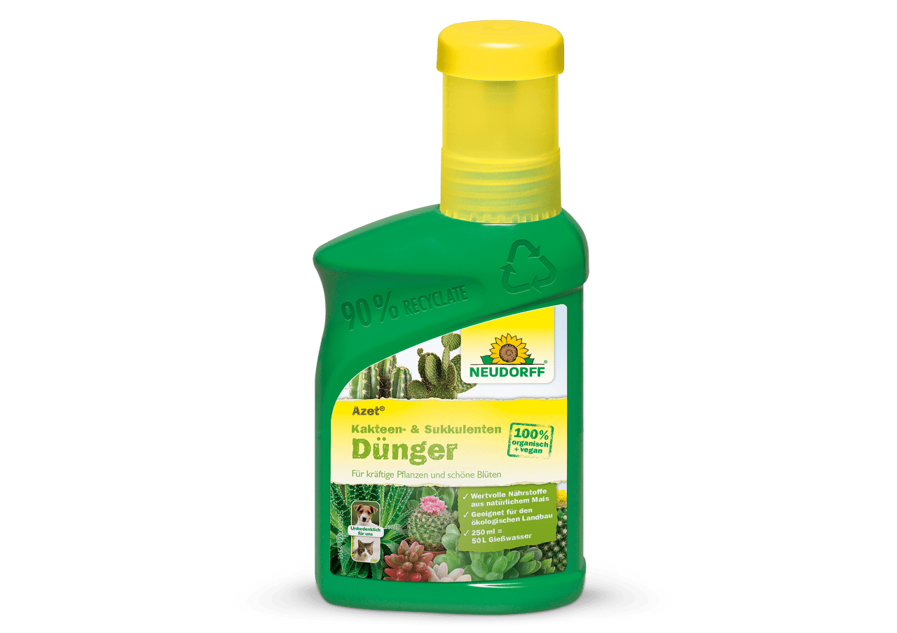 Der organische Azet Kakteen- & SukkulentenDünger hat einen NPK-Wert von 3-3-3 und ist optimal für Kakteen, Sukkulenten und Bonsais geeignet. Auch sogenannte „Schwachzehrer“ benötigen im Sommerhalbjahr alle 3-4 Wochen Ihre Extra-Portion Nährstoffe. Nur so bilden sie ggf. auch ihre beeindruckenden Blüten aus – in Ihrem Wohnraum ein wahrer Augenschmaus.