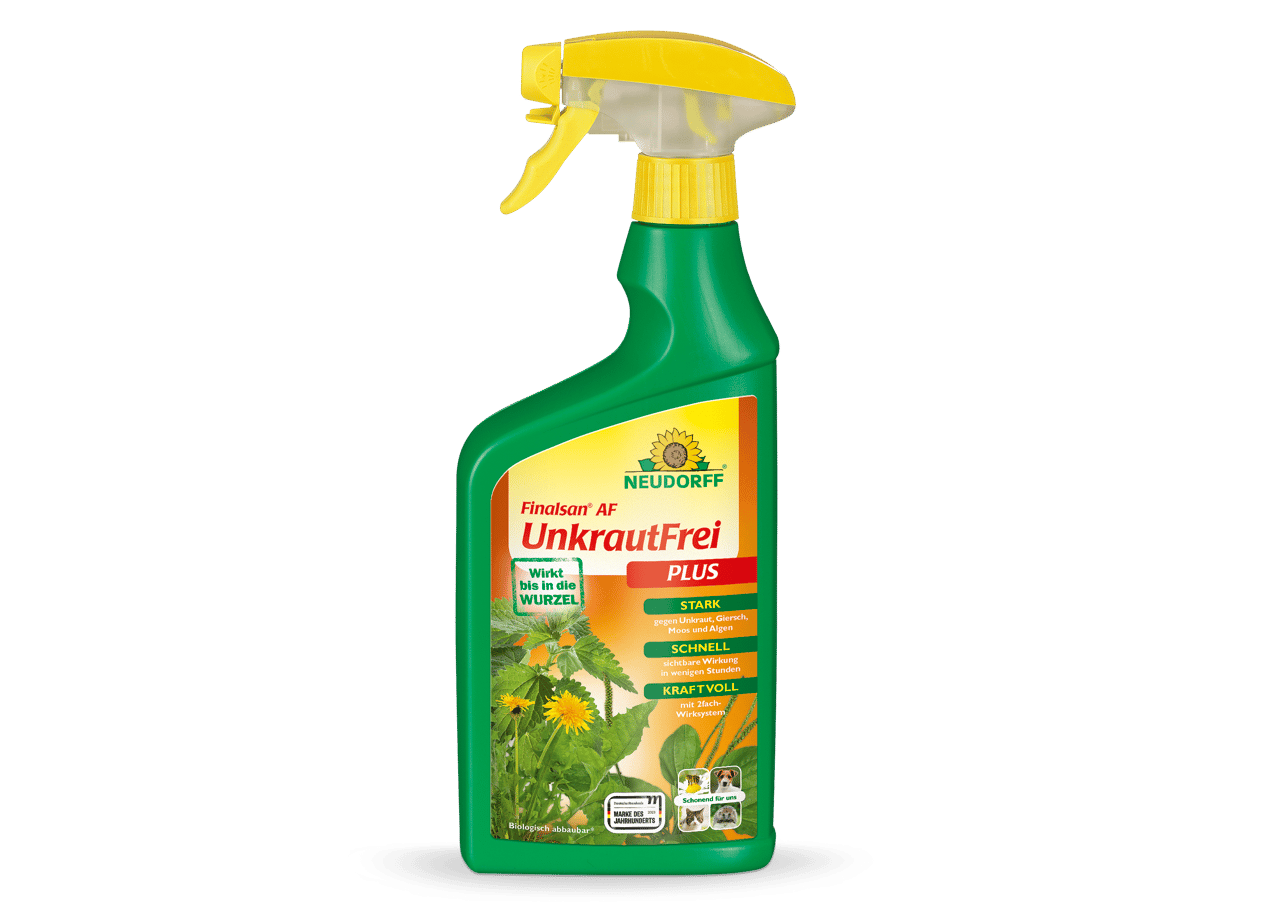 Finalsan AF UnkrautFrei Plus wirkt gegen viele wichtige Unkräuter wie z.B. Löwenzahn,Wegerich-Arten, Gräser, Vogelmiere, Brennnessel und Distel. Die Wirkung ist bereits nach einem Tag sichtbar. Außerdem werden Moose und Algen bekämpft. Das Mittel besitzt keine nachhaltige Wirkung.