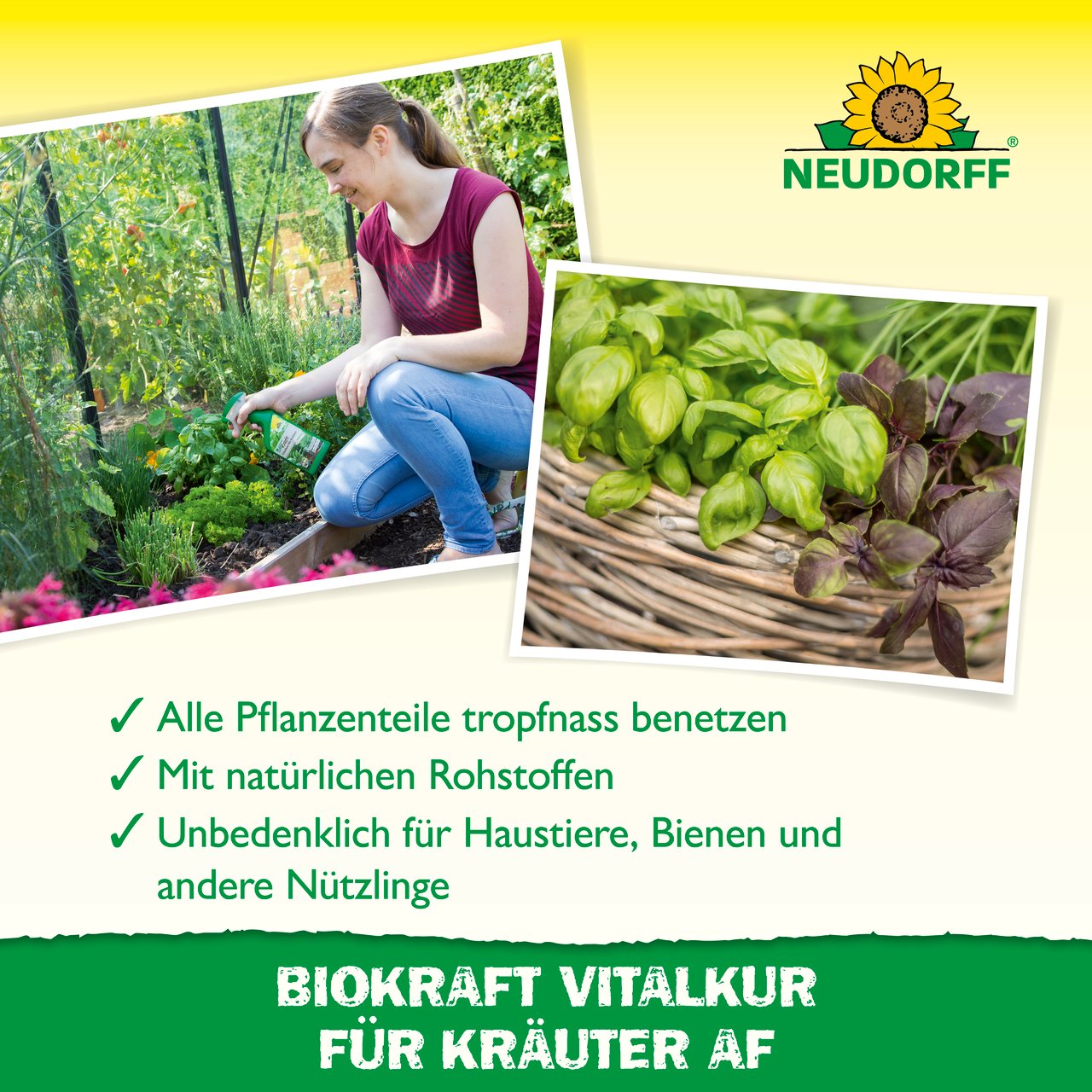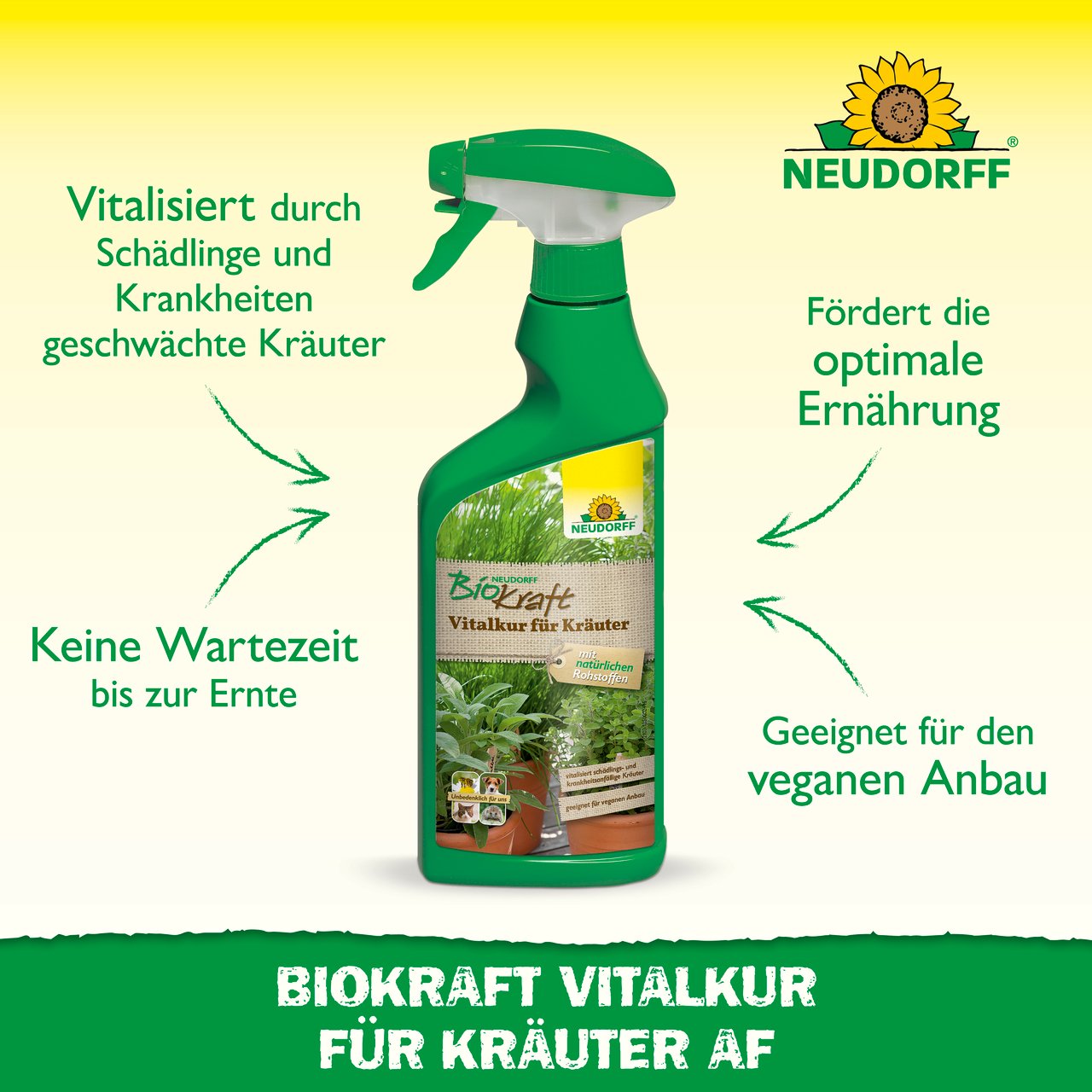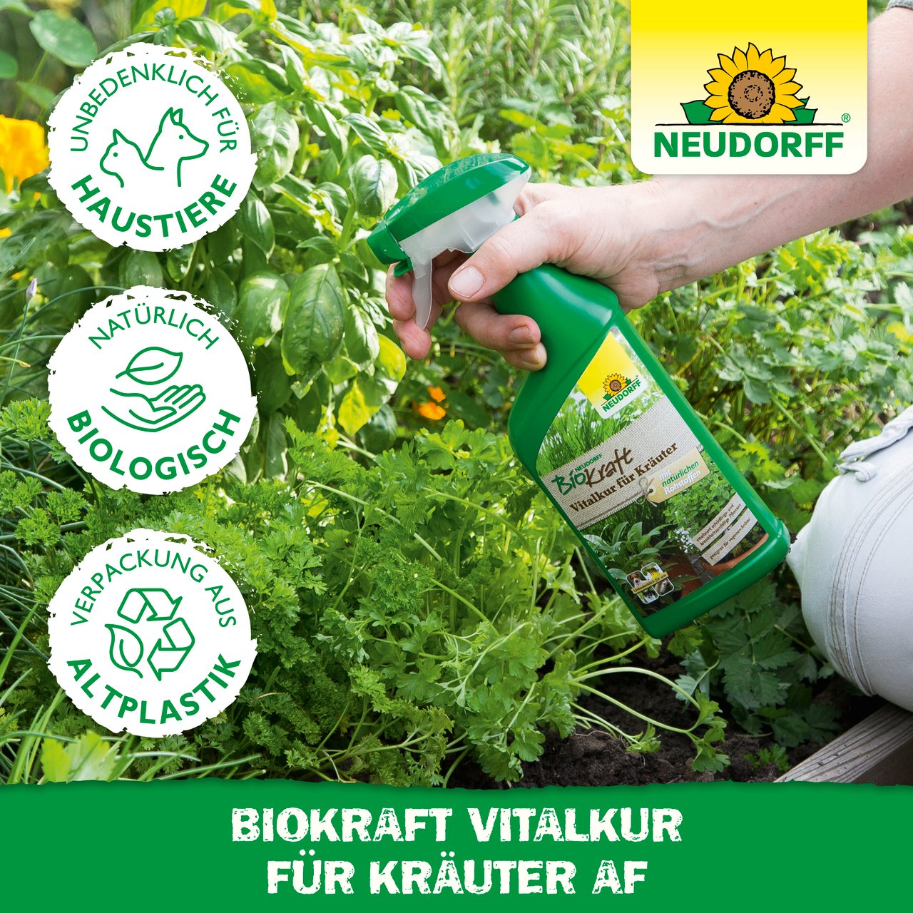 Neudorff BioKraft Vitalkur für Kräuter möglichst frühzeitig anwenden, um die Gesundheit und Vitalität der Pflanze zu fördern.