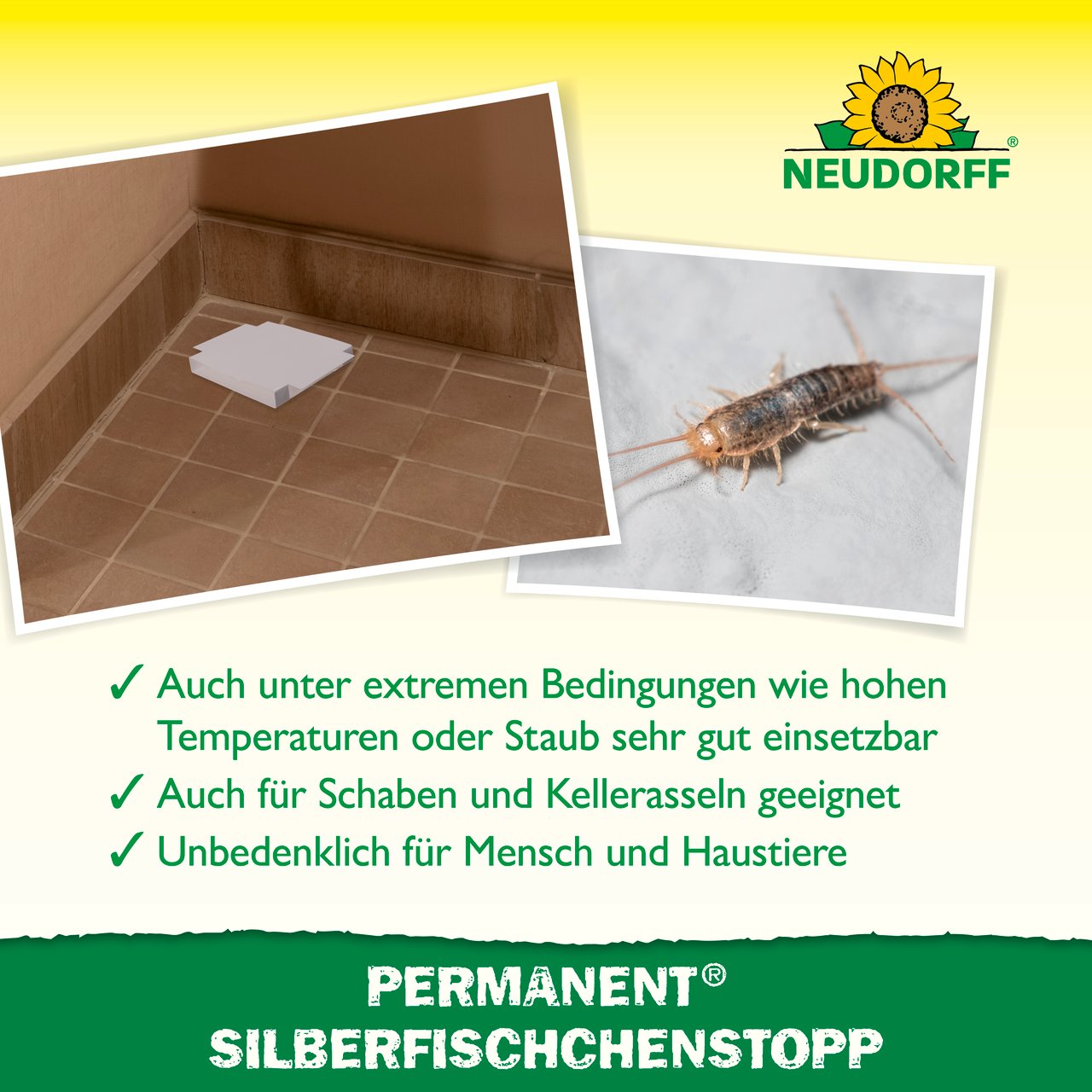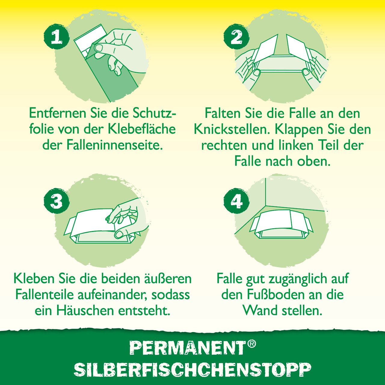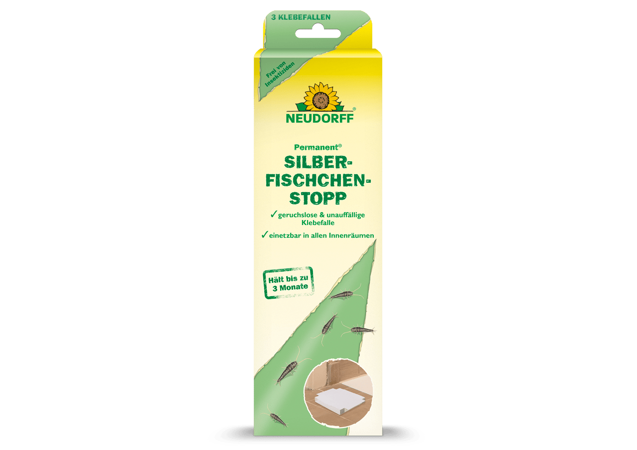 Die lichtscheuen Silberfischchen halten sich in dunklen Fugen und Ritzen auf. Auf der Suche nach Nahrung orientieren sie sich an Wänden. Die Silberfischchen suchen Schlupflöcher auf, sobald Gefahr besteht. Sie kriechen somit in die Falle und bleiben am Kleber hängen. Die Klebefalle ist auch unter extremen Bedingungen wie Staubentwicklung und hohen Temperaturen sehr gut einsetzbar.