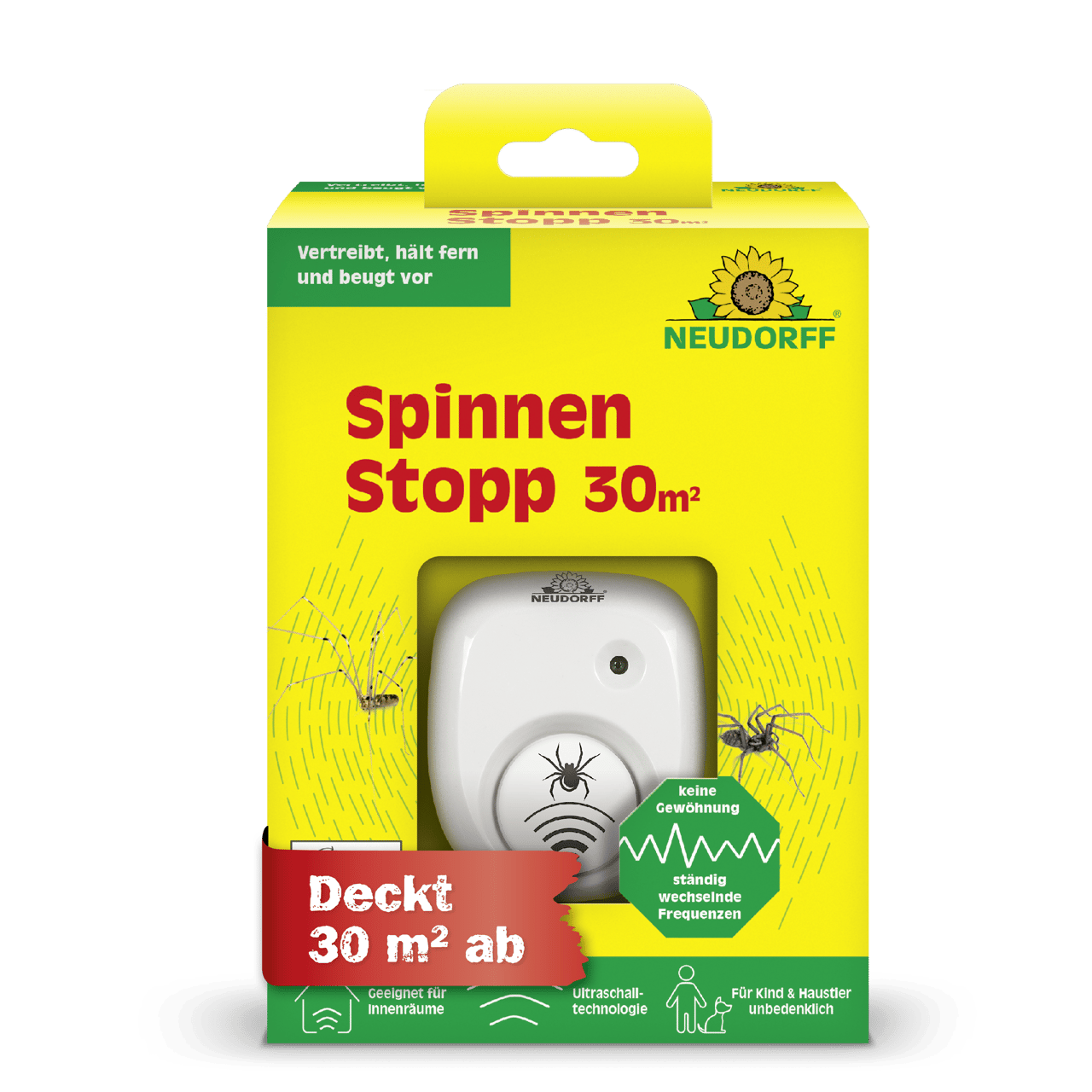 Wie groß ist die Reichweite von SpinnenStopp 30 m²?